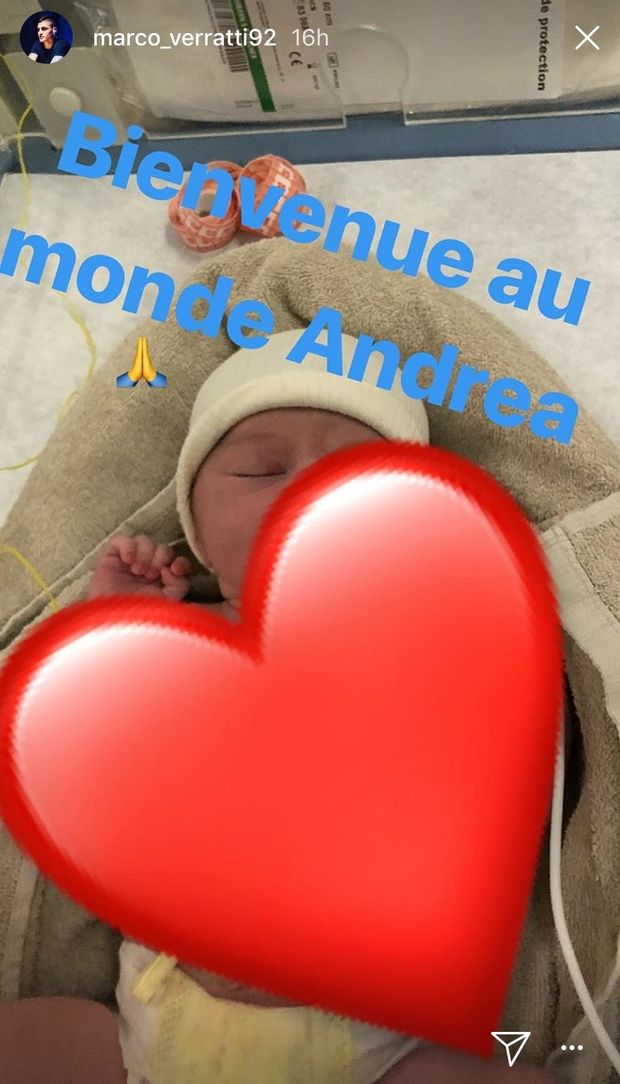 Marco Verratti, centrocampista del PSG, è diventato papà di un maschietto. Il bimbo si chiama Andrea ed è nato ieri. L'ex giocatore del Pescara, che ha condiviso i primissimi scatti del nuovo arrivato su Instagram, è già papà di un bimbo che si chiama Tommaso.