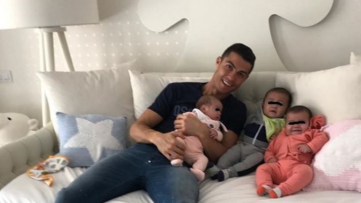 Momento di relax anche per Cristiano Ronaldo. L'asso del Real Madrid, fresco del quinto Pallone d'Oro messo in bacheca, ha postato su Instagram una foto che lo ritrae sul divano di casa con i tre figli più piccoli, Mateo, Eva Martina e Alana Martina. Il campione portoghese ha commentato, in maniera ironica, la foto con questa didascalia: "Sono stato bloccato da questi bei bambini".