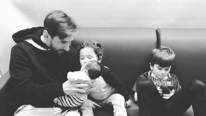 Festa del Papà molto particolare per Lionel Messi, diventato recentemente padre per la terza volta. La sua compagna, Antonella Roccuzzo, lo ha immortalato con una foto, pubblicata poi su Instagram, che vede Leo 'impegnato' con i suoi tre figli. Il commento della moglie è sensazionale: "Felice giornata Papà. Ti amiamo tanto. Grazie per essere il miglior papà del mondo".