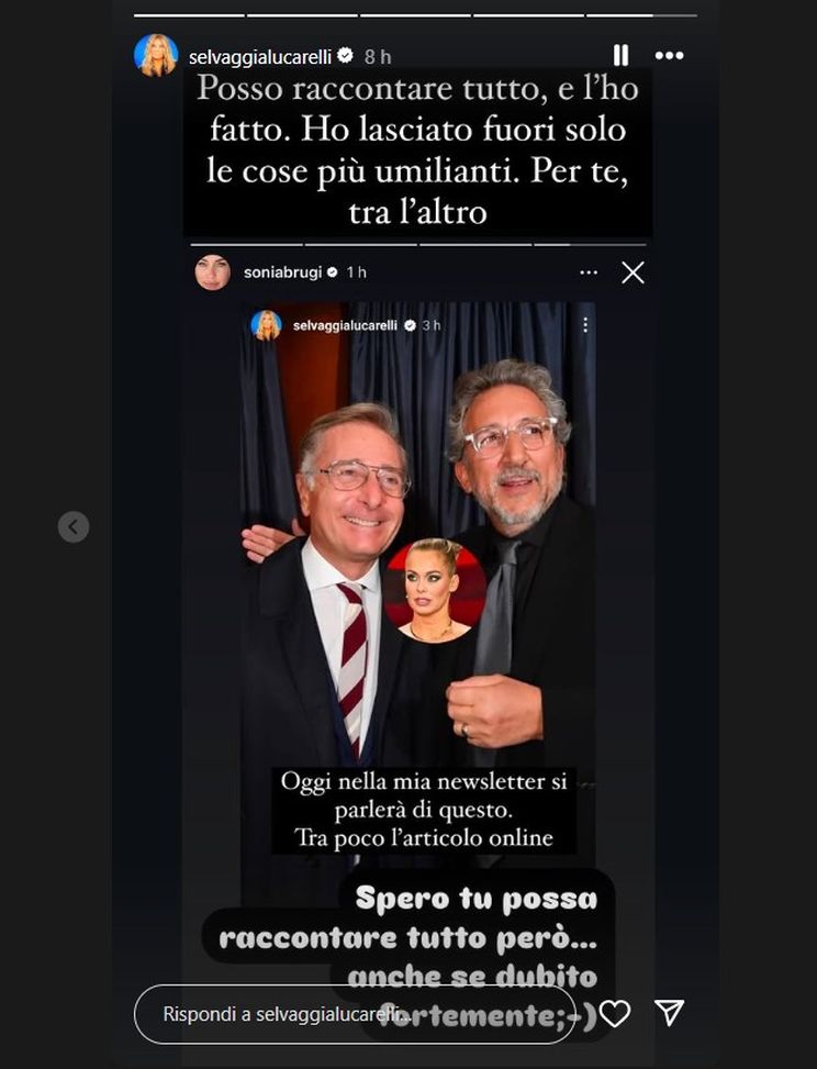 E a quel post la Lucarelli aveva subito risposto con una storia: "Posso raccontare tutto e l'ho fatto. Ho lasciato fuori solo le cose più umilianti. Per te, tra l'altro".