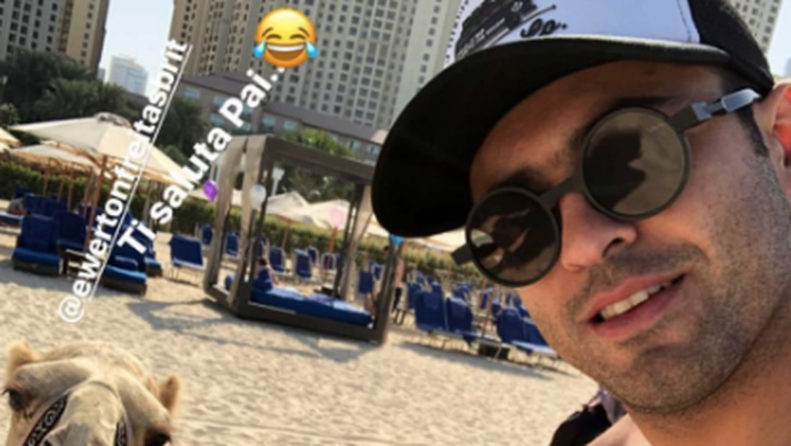 Si ferma la Serie A e i giocatori dell'Inter ne approfittano per una vacanza. Eder è volato a Dubai con la famiglia e arrivato in spiaggia si fa un selfie con... un cammello: