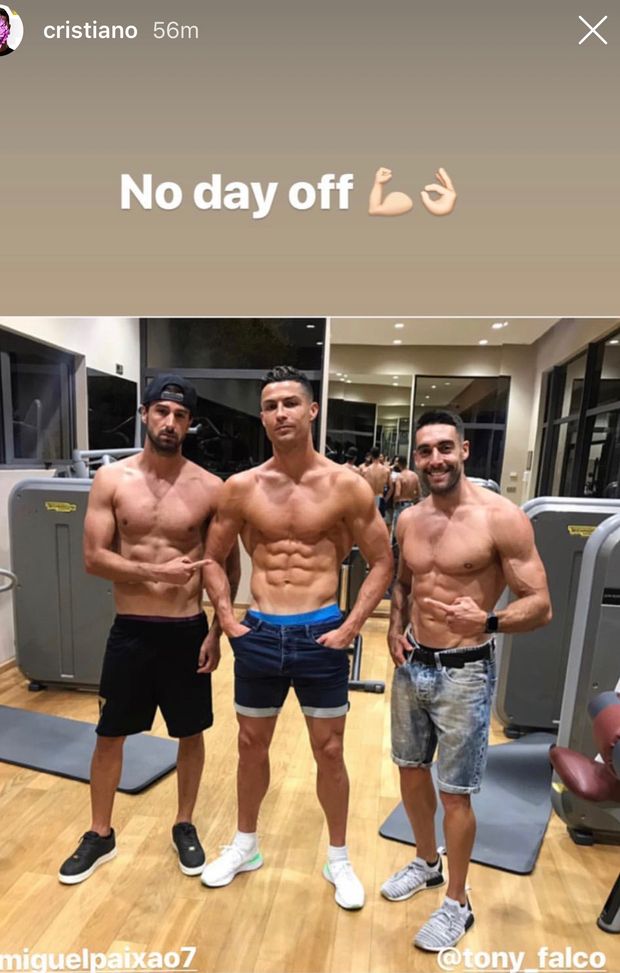 Cristiano Ronaldo ha poi condiviso uno scatto dalla palestra. Il portoghese non si ferma mai e anche nel suo giorno libero lavora instancabile: "No day off".