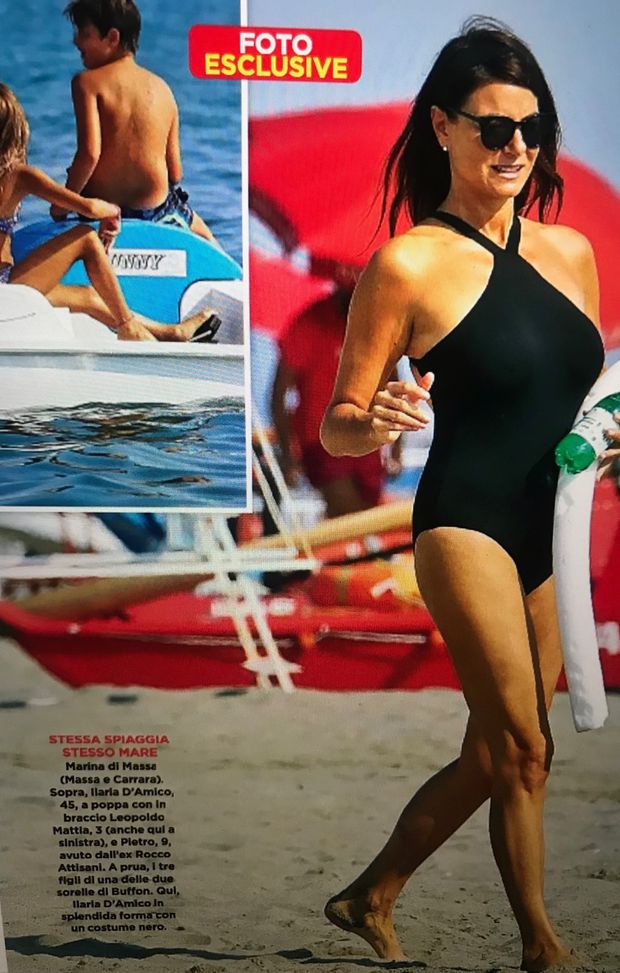 Ilaria D'Amico è stata avvistata a Forte dei Marmi nello stabilimento balneare della famiglia di Gigi Buffon. La conduttrice televisiva se la cava egregiamente con i figli (suoi e non solo) e li porta in giro sul pedalò. Vacanze semplici per ricaricarsi. Ilaria è in ottima forma e sfoggia felice un costume intero, che esalta la sua figura. La D'Amico è pronta per una nuova stagione calcistica su Sky...