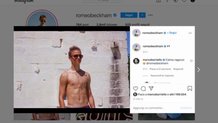 Romeo Beckham segue le orme del padre, sex symbol sui social. E Borriello predica calma
