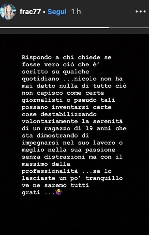"Chi non andrebbe alla Juve?". Questo il virgolettato di Nicolò Zaniolo riportato dal Corriere di Torino: il talento giallorosso avrebbe confidato questo desiderio ai suoi amici, ma la madre del ragazzo, Francesca Costa, ha subito voluto smentire il tutto. "Rispondo a chi chiede se fosse vero ciò che è scritto su qualche quotidiano... Nicolò non ha mai detto nulla di tutto ciò, non capisco come certi giornalisti o pseudo tali possano inventarsi certe cose destabilizzando volontariamente la serenità di un ragazzo di 19 anni che sta dimostrando di impegnarsi nel suo lavoro, o meglio, nella sua passione, senza distrazioni ma con il massimo della professionalità… Se lo lasciaste un po’ tranquillo ve ne saremmo tutti grati…", ha scritto la donna su Instagram.