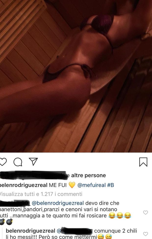 Una sauna bollente e un fisico perfetto. Belen Rodriguez fa impazzire i fan con il suo ultimo scatto social. Nonostante il Natale sia passato solo da qualche giorno, la showgirl ha mantenuto perfettamente la linea, anche se forse il segreto sta tutto nella posizione. "Devo dire che panettoni, pandori, pranzi e cenoni vari si notano tutti. Quanto mi fai rosicare", ha scritto una fan. Immediata la risposta di Belen che svela il segreto: "Comunque due chili li ho messi!!! Però so come mettermi".