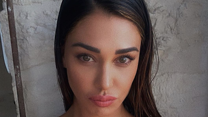 Belen presenta la nuova linea di costumi. Il décolleté della Rodriguez lascia tutti di stucco