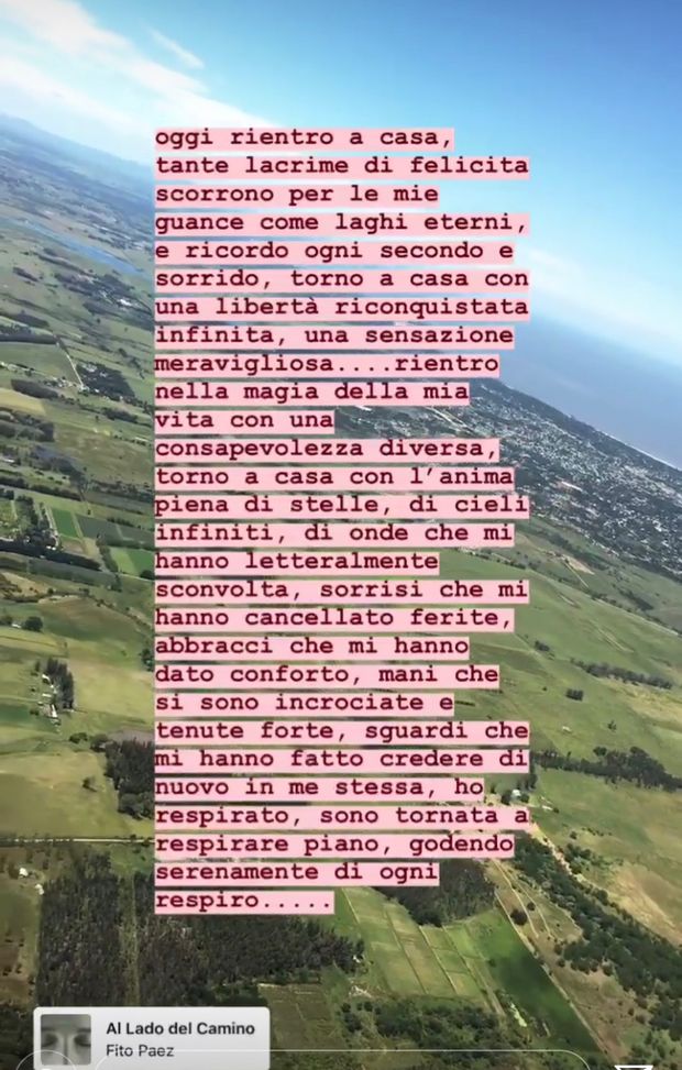 Belen Rodriguez ha trascorso giorni indimenticabili nella sua Argentina, isolandosi da notizie di gossip e vecchi amori (Iannone). La show girl argentina era insieme ai suoi amici, ma a qualcuno non è passato inosservato il periodo trascorso in Uruguay (si mormora ci sia stato qualcosa con il calciatore Lavezzi). Queste le sue parole sui social mentre stava rientrando a casa in Italia: "Oggi rientro a casa, tante lacrime di felicità scorrono sulle mie guance come laghi eterni, e ricordo ogni secondo e sorrido, torno a casa con una libertà riconquistata infinita, una sensazione meravigliosa... rientro nella magia della mia vita con una consapevolezza diversa, torno a casa con l'anima piena di stelle, di cieli infiniti, di onde che mi hanno letteralmente sconvolta, sorrisi che mi hanno cancellato ferite, sorrisi che mi hanno cancellato ferite, abbracci che mi hanno dato conforto, man che si sono incrociate e tenute forte, sguardi che mi hanno fatto credere di nuovo in me stessa, ho respirato, sono tornata a respirare piano, godendo serenamente di ogni respiro..."