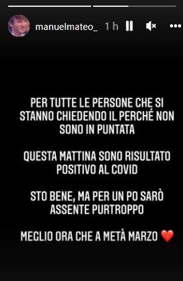 Manuel Bortuzzo non era negli studi del GF vip questa sera. Per chi ha notato la sua assenza, l'atleta ha scritto un messaggio su Instagram e ha spiegato il motivo. "Per tutte le persone che si stanno chiedendo il perché non sono in puntata. Questa mattina sono risultato positivo al coronavirus. Sto bene, ma per un po' sarò assente purtroppo. Meglio ora che a metà marzo". Con l'ultima frase si riferisce al fatto che a metà marzo ci sarà la finale del Grande Fratello e lui vuole esserci per accogliere all'uscita la fidanzata, Lulù, finalista del programma.