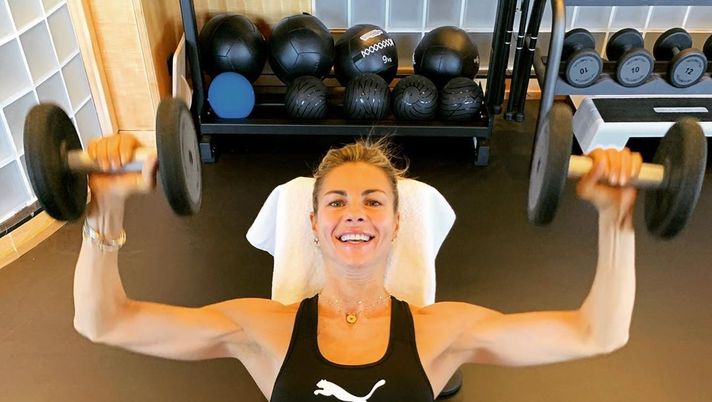Un lunedì all'insegna del fitness per la Colombari, che mostra uno splendido sorriso nonostante la fatica dell'allenamento.
