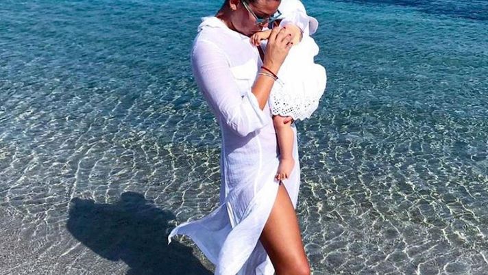 Un'immagine bellissima. Costanza Caracciolo, tutta vestita di bianco, bacia la sua piccola Stella. Sono entrambi in riva al mare e la bella ex velina, compagna di Bobo Vieri, coccola la loro bimba.