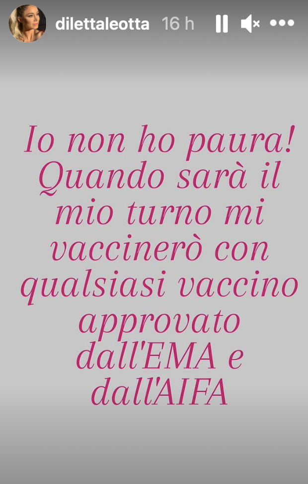 Diletta Leotta si vaccinerà. E' quanto comunicato dalla stessa conduttrice DAZN, che su Instagram ha voluto mandare un messaggio a coloro che hanno dubbi nei confronti dei vaccini contro il Covid-19, spiegando che lei senza problemi lo farà. Ha scritto infatti: "Io non ho paura! Quando sarà il mio turno mi vaccinerò con qualsiasi vaccino approvato dall'EMA e dall'AIFA".