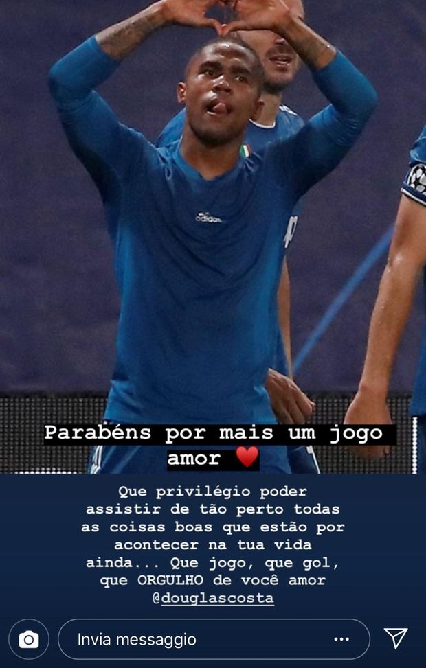 Douglas Costa dedica il gol alla fidanzata, lei: “E’ un orgoglio poterti stare vicino”