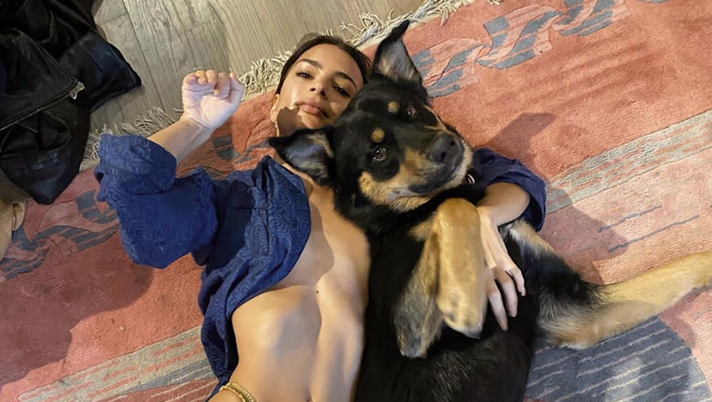Emily ‘tormenta’ di coccole il cane. La Ratajkowski in posa sexy fa impazzire il web