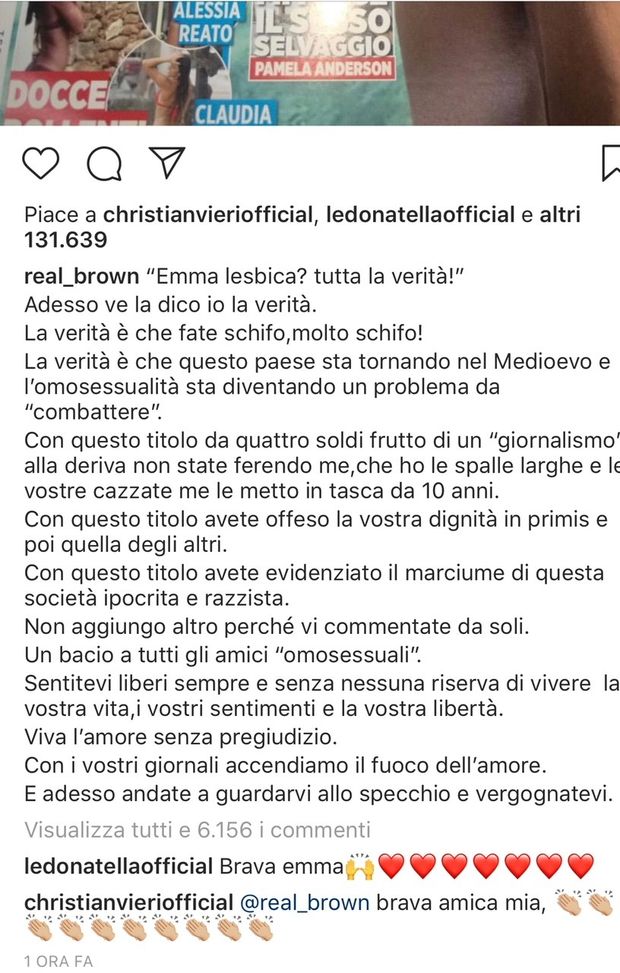 "Emma lesbica? Tutta la verità". Questo titolo, comparso su un settimanale, ha fatto infuriare Emma Marrone. La cantante ha replicato su Instagram: "Emma lesbica? tutta la verità!”
