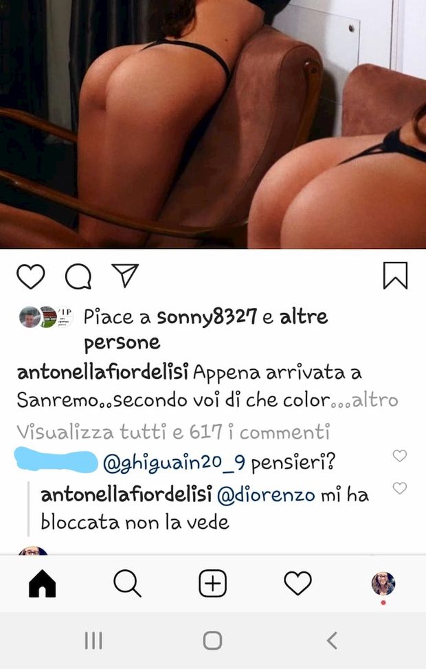 Un'Antonella Fiordelisi da impazzire. A Sanremo, in attesa di presenziare al Festival, la sexy spadista mette in mostra ai suoi follower un lato B da paura. E c'è anche chi ha provato a stuzzicarla, chiamando in causa l'ex fiamma della Fiordelisi, l'attaccante della Juventus Gonzalo Higuain. Lei, per tutta risposta, ha confessato: "Mi ha bloccata".