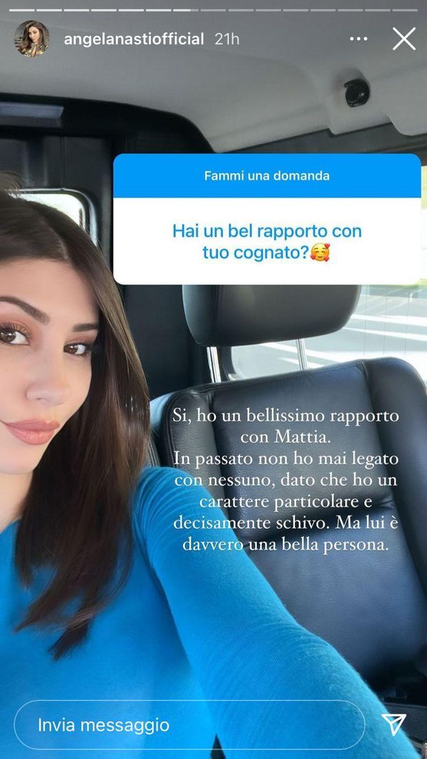 Anche la sorella di Chiara Nasti, Angela, ha un messaggio per Nicolò Zaniolo (ex fidanzato di Chiara). Angela, ex fidanzata del calciatore Bonifazi, ha risposto alla domanda di un follower su Instagram in merito all'attuale storia che la sorella Chiara ha con Zaccagni. "Ho un bellissimo rapporto con Mattia. In passato non ho mai legato con nessuno, dato che ho un carattere particolare e decisamente schivo. Ma lui è davvero una bella persona".