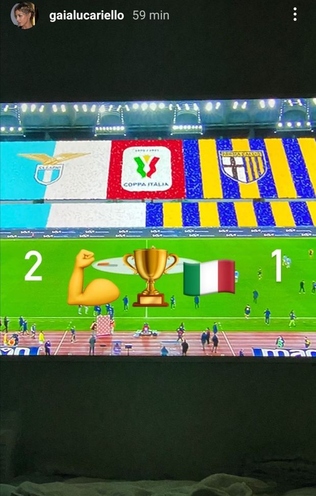 Gaia Lucariello festeggia sui social la vittoria della Lazio negli ottavi di finale di Coppa Italia contro il Parma. La moglie dell'allenatore biancoceleste Simone Inzaghi ha pubblicato nelle sue Instagram Stories uno scatto della tv dopo il successo della formazione capitolina con il risultato di 2-1.