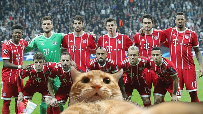 Il Bayern Monaco ha scherzato su Twitter sull'invasione del gatto durante la gara contro il Besiktas: il club tedesco, noto per gli scherzi soprattutto attraverso l'account inglese, ha postato un selfie con il gatto in primo piano e poi ha annunciato scherzosamente di aver chiesto un biglietto aereo in più per Siviglia, dopo il sorteggio con la squadra di Montella nei quarti di Champions League.
