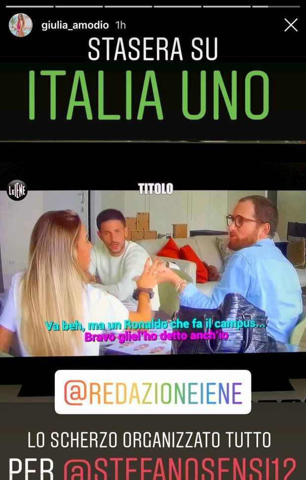 "È con grande piacere che posso finalmente svelarvelo: questa sera alle IENE andrà in onda lo scherzo che con tanto amore abbia organizzato per Stefano.. Siamo stati un po’ cattivi ma ne è valsa la pena! Questa sera tutto sintonizzati su ITALIA UNO per ridere assieme".