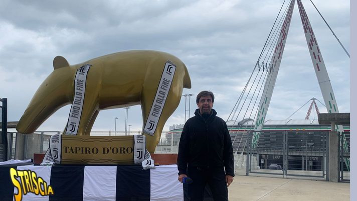 Dopo la sospensione della Superlega alla Juve e al suo presidente è stato recapitato un tapiro d'oro. Valerio Staffelli lo ha recapitato al club bianconero e al suo presidente direttamente all'Allianz Stadium. Ma non è la semplice versione del noto premio di Striscia La Notizia, ma una versione gigantesca come si vede nella foto.