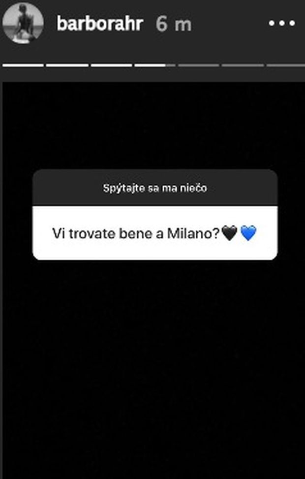 La compagna del difensore dell'Inter Skriniar, Barbora Hrnocekova, ha risposto ad alcune domande dei suoi follower su Instagram tranquillizzando anche i tifosi nerazzurri sul fatto che a Milano si trovino molto bene e allontanando per il momento le voci di mercato.