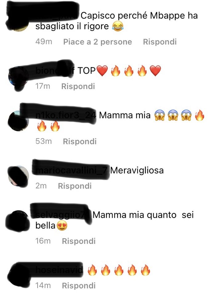Non sono mancati like e complimenti da parte dei numerosissimi ammiratori della Jacobelli. Un fan ha anche scherzato sul presunto flirt con il giocatore del Psg, Mbappé: "Capisco perché ha sbagliato il rigore!".