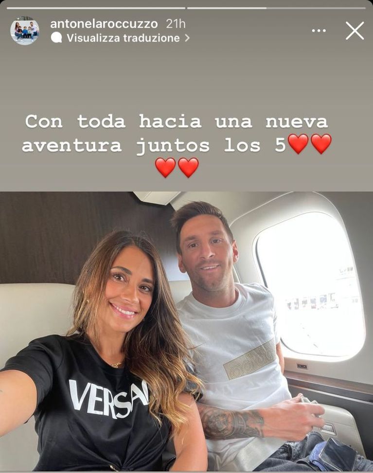 "Verso un nuova avventura, tutti insieme i cinque". Così la moglie di Lionel Messi, Antonela Roccuzzo, suggella in un selfie di coppia pubblicato su Instagram il trasferimento della famiglia del campione argentino da Barcellona a Parigi.