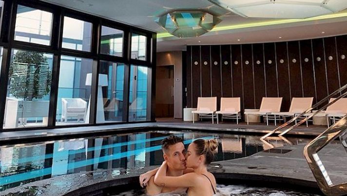 Il suo futuro si deciderà nei prossimi giorni, ma intanto l'attaccante Andrea Pinamonti si è goduto un giorno di relax in compagnia della sua Nicole Confortin per il loro anniversario. Una foto, diffusa sui social dalla ragazza, li ritrae intenti in effusioni in una vasca idromassaggio in hotel. Lei ha dedicato a Pinamonti questo pensiero: