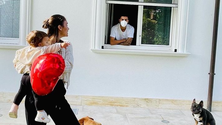 "8 anni e Covid-19. Forza amore mio". Veronica Martinelli, moglie del centrocampista della Roma Lorenzo Pellegrini, ha postato uno scatto che ritrae il calciatore in isolamento dopo la positività al Coronavirus.