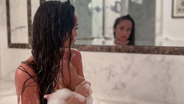 La show-girl fa bella mostra di sé in una vasca e in una foto che lascia poco spazio all'immaginazione