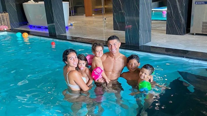 "Il tempo trascorso con la famiglia è il migliore". Cristiano Ronaldo si gode qualche ora di riposo in compagnia insieme alla sua Georgina Rodriguez e ai figli. Il fuoriclasse portoghese ha postato una foto direttamente in piscina con la famiglia al completo.