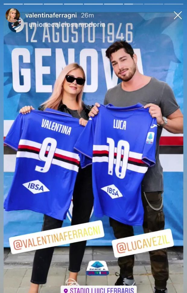 Valentina Ferragni è stata avvistata in tribuna al Marassi a tifare per la Sampdoria insieme al fidanzato Luca Vezil. La sorella della influencer Chiara ha partecipato alla trasferta nonostante un discreto mal di denti, del quale ha parlato nelle sue Instagram Stories. Lei e il fidanzato sono ospiti della Sampdoria e hanno condiviso la foto con le magliette personalizzate.
