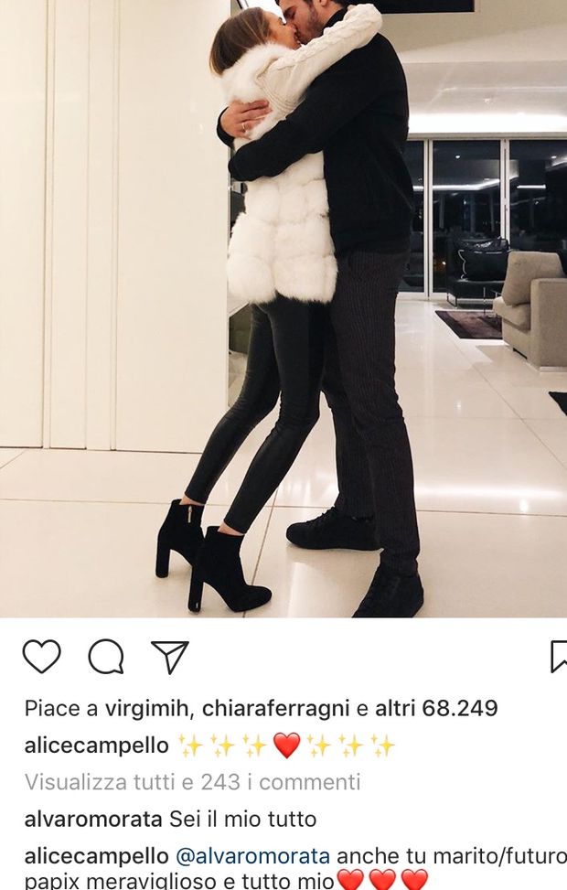 Alice Campello e Alvaro Morata sono sempre più innamorati e si godono l'attesa per i loro gemelli. Anche sui social i due non risparmiano le "effusioni". "Sei il mio tutto", ha commentato Alvaro sotto la foto di un loro abbraccio. "Anche tu meraviglioso marito e futuro papà e tutto mio".
