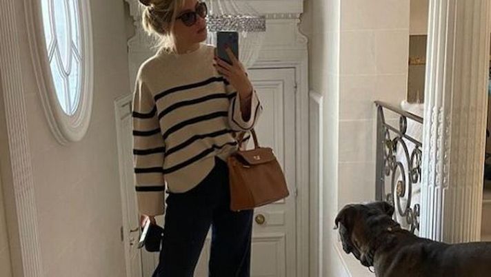 La moglie di Icardi davanti all'Arco di Trionfo: leggins, maglia lunga rosa e occhiali oscuri da sole a completare il look di oggi