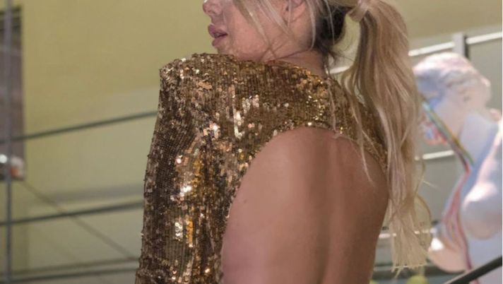 L'argentina, moglie e agente dell'attaccante di proprietà dell'Inter, ha postato una foto in cui indossa un abito di paillettes giallo con la schiena nuda. Una caratteristica che Wanda Nara apprezza molto nel suo capo.