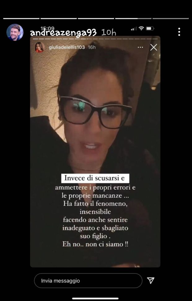 Persino Giulia De Lellis, ex del pilota della moto gp Andrea Iannone, ha detto la sua a difesa del figlio dell'ex portiere. "Invece di scusarsi e ammettere i propri errori e le proprie mancanze ha fatto il fenomeno insensibile. E ha anche fatto sentire inadeguato e sbagliato suo figlio. No, non ci siamo". La storia postata dalla nota influencer è stata ripostata sul profilo di Andrea da chi sta gestendo momentaneamente il suo account.