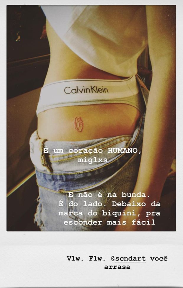Nuovo tatuaggio per Bruna Marquezine, ex compagna dell'attaccante del Psg Neymar. L'attrice brasiliana si è tatuata un cuore umano e ci tiene a precisare una cosa sul suo nuovo tatuaggio: