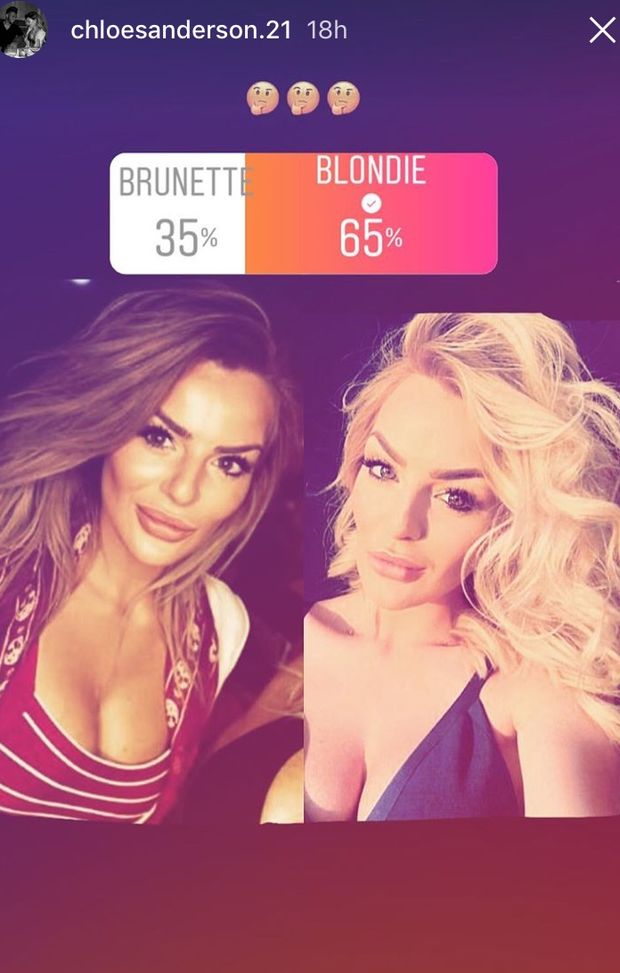 Chloe Sanderson, moglie di Davide Santon, ha deciso di consultarsi con i suoi follower di Instagram e lanciare un sondaggio circa un eventuale cambio di colore e look. Rimanere bionda o diventare castana? Il 65% ha votato per il biondo...