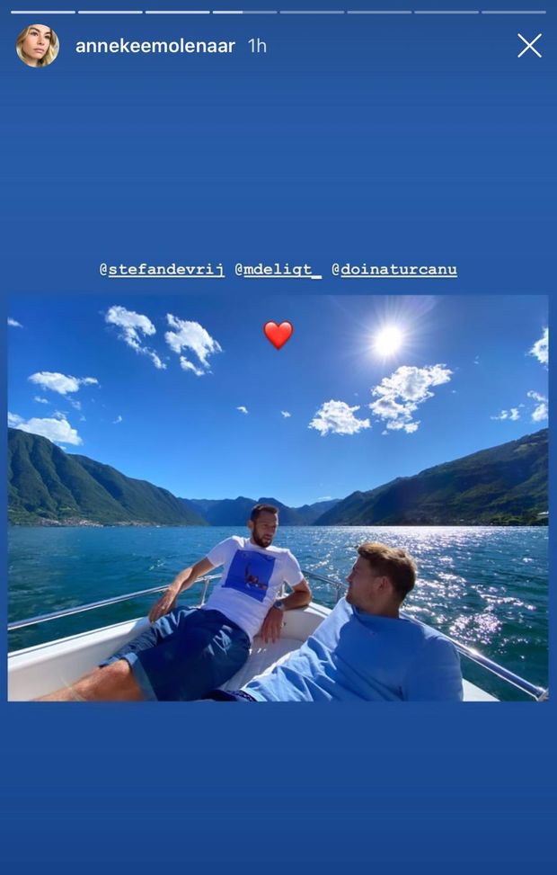 Giornata al lago per il difensore della Juventus Matthijs de Ligt dopo la delusione della Coppa Italia, visto il KO dei bianconeri in finale contro il Napoli. E' stata la compagna dell'olandese, AnneKee Molenaar a condividere uno scatto che li rappresenta sul lago di Como. E, nelle Stories della modella, si evince che la coppia non era sola: erano presenti, infatti, anche Stefan de Vrij, grande amico di De Ligt, e la compagna Doina.