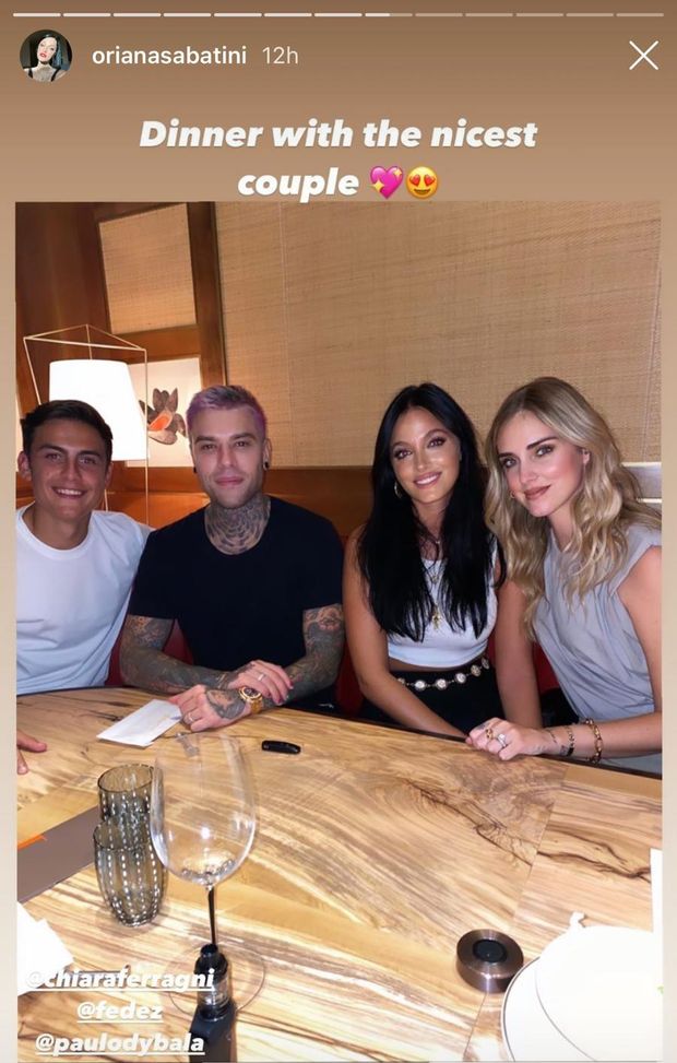 Paulo Dybala lavora per tornare in campo. Intanto, insieme alla fidanzata Oriana Sabatini si è concesso una cena romantica. La coppia, però, non era sola. Con loro, infatti, c'era una delle coppie più famose d'Italia, quella formata da Chiara Ferragni e Fedez. "Cena con la coppia più carina del mondo", ha scritto la cantante argentina Oriana Sabatini.