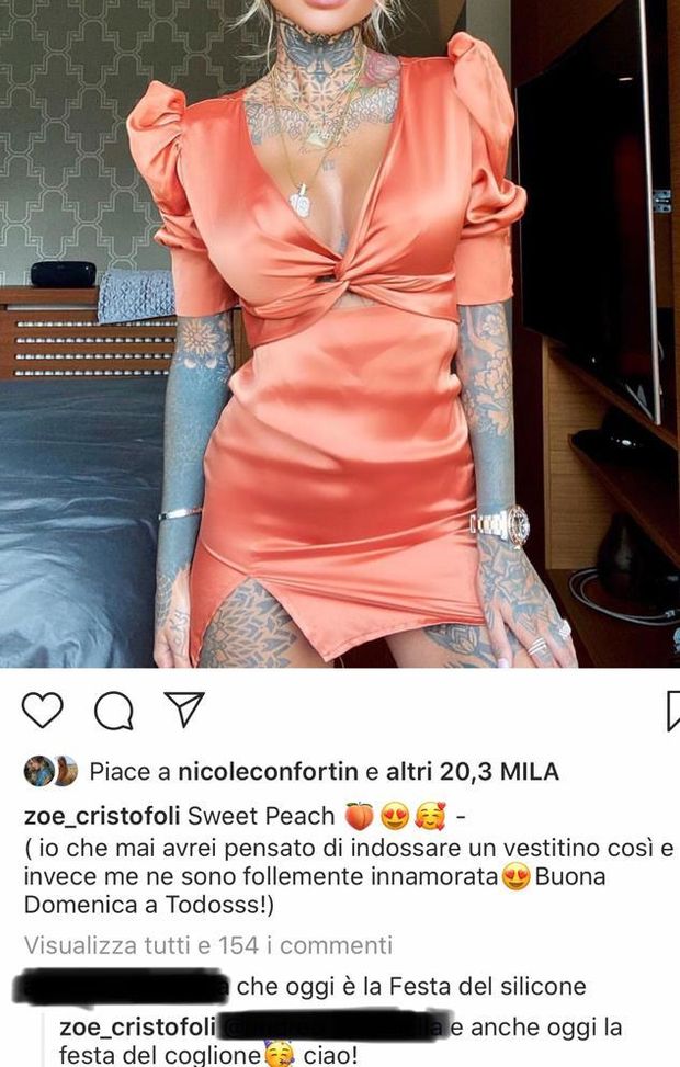 Non ha gradito Zoe Cristofoli il commento di un follower su Instagram. "La festa del silicone", le ha scritto un utente sui social. La fidanzata di Theo Hernandez non ha lasciato correre ed è sbottata: "Anche oggi la festa del c******e!"
