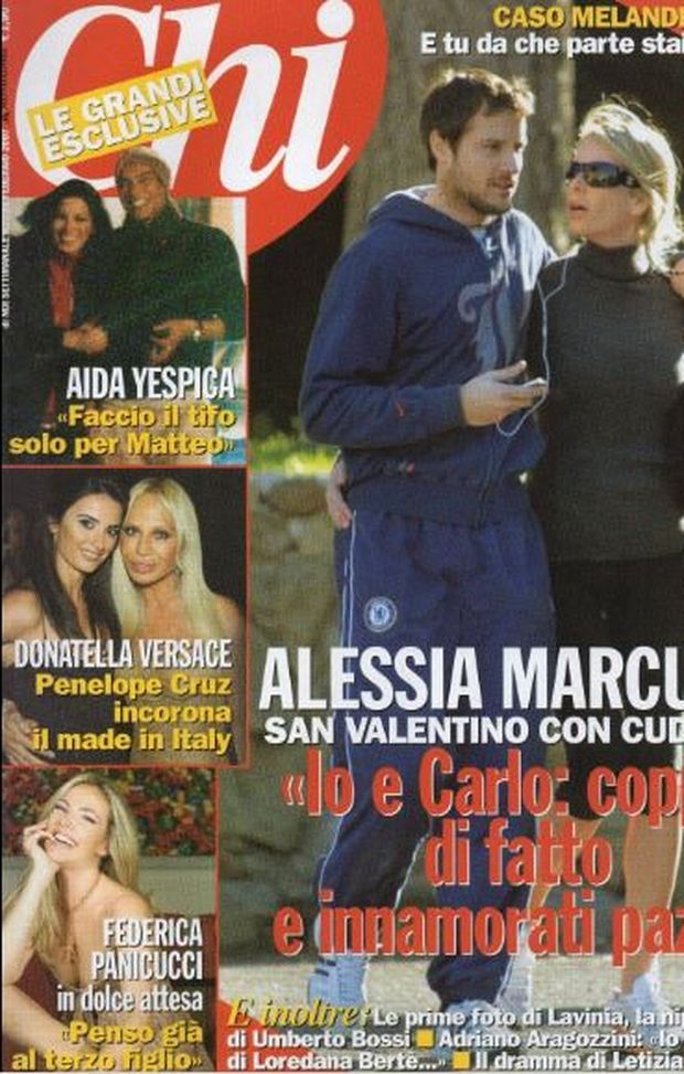 Alessia Marcuzzi è stata due volte una wags perché dopo essersi innamorata a venti anni di Simone Inzaghi, tanto da farci un figlio, Tommaso (la seconda figlia di Alessia si chiama Mia ed è nata dalla storia con Facchinetti), è stata anche la fidanzata di Carlo Cudicini, ex portiere del Chelsea. La loro storia è durata a lungo, dal 2003 al 2008 (ancora una volta per la foto sotto ci viene in soccorso la prima di CHI). Con l'allenatore della Lazio Alessia ha conservato un rapporto bellissimo, tanto da essere diventata la testimone di nozze sua e di Gaia, sua moglie. Lei ora ha abbandonato il mondo del calcio, si è sposata con Paolo Calabresi Marconi, un produttore tv.