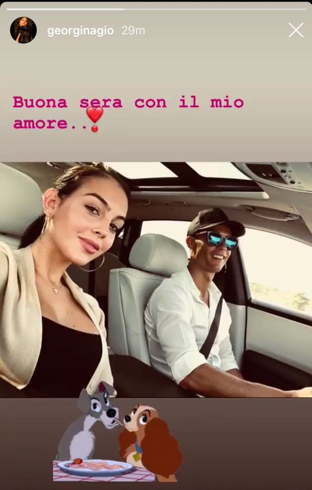 Il nuovo super campione della Juve, Cristiano Ronaldo, ha iniziato da poco l'avventura in Italia e sta ancora ambientandosi. Così come la sua famosa compagna, Georgina Rodriguez, che inizia a masticare italiano. Sulle sue storie di Instagram ha pubblicato una foto assieme a CR7 commentando così: "Buonasera con il mio amore!".
