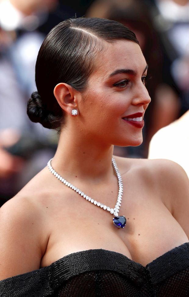 Georgina Rodriguez ha catturato l'attenzione al festival del cinema di Cannes con uno stile spettacolare: gli sguardi erano tutti per lei. La modella di 25 anni è apparsa in un vestito nero aderente con una scollatura a cuore e una collana sorprendente. La Rodriguez ha deciso di continuare a scommettere sul colore nero, come a Venezia un anno fa, anche se questa volta i capelli erano raccolti. Georgina ha condiviso su Instagram una foto in accappatoio proprio dall'albergo di Cannes che la ospitava. Poi i fotografi l'hanno immortalata al famoso evento. Non c'era Cristiano Ronaldo, Georgina è stata accompagnata da un'amica della sorella del calciatore.