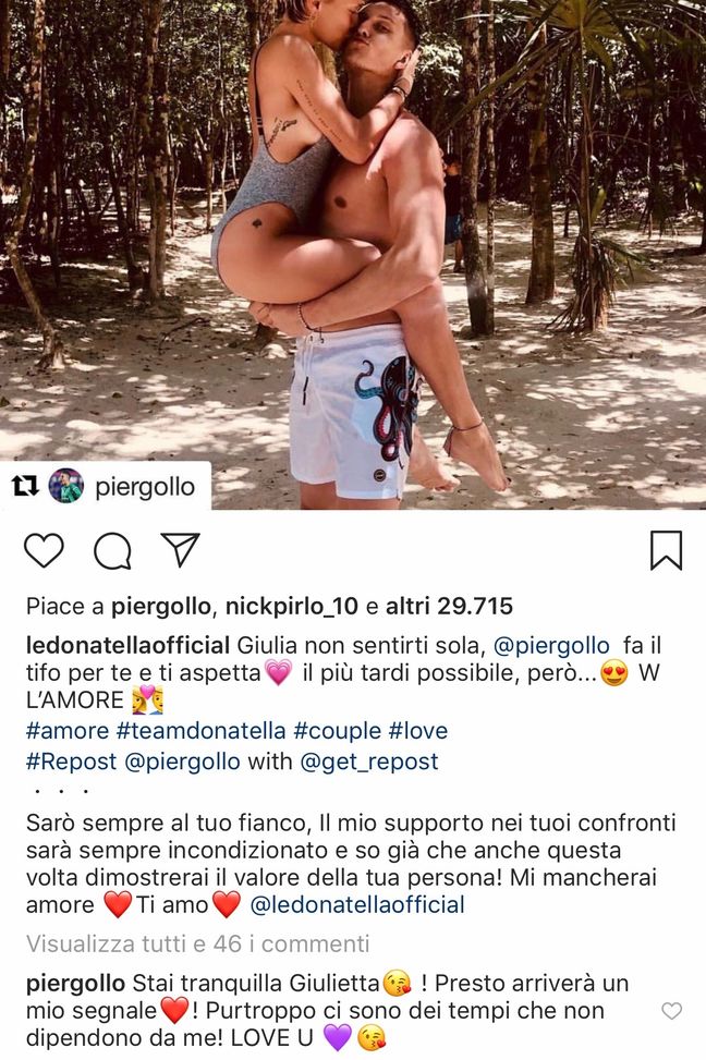 Giulia Provvedi e Pierluigi Gollini sono una delle coppie più affiatate del momento. Anche se in questo momento la Provvedi è impegnata in un reality, il Grande Fratello Vip, e al momento i due sono "lontani". Lo stesso Pierluigi si è fatto sentire sui social: "Stai tranquilla, Giulietta. Presto arriverà un mio segnale. Purtroppo ci sono dei tempi che non dipendono da me!"