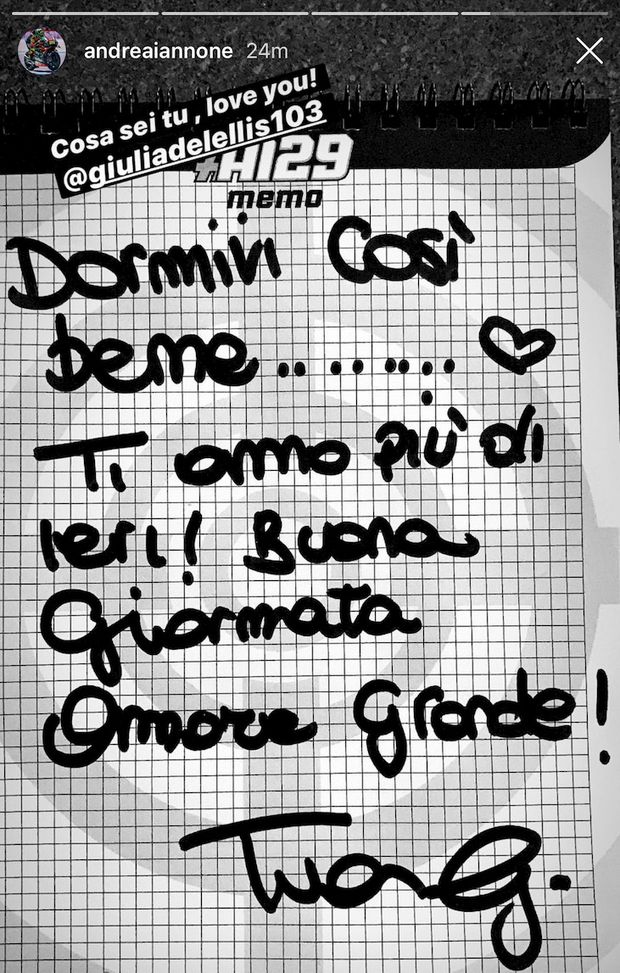 Nella serata di ieri Giulia De Lellis e Andrea Iannone hanno quindi incantato Venezia. Belli, spregiudicati e innamorati. Ma anche romantici. Lui in smoking nero, lei con un magnifico vestito di Blumarine. E al suo risveglio Andrea ha trovato una bella sorpresa di Giulia...
