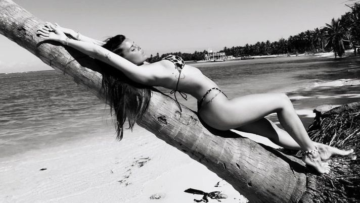 Il fascino indiscusso di lady Zarate: pose sexy in spiaggia tra le palme
