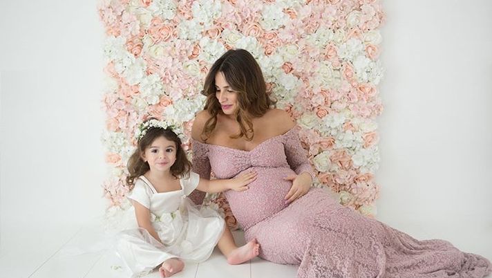 Lady Pastore in dolce attesa si concede in un servizio fotografico con la bimba