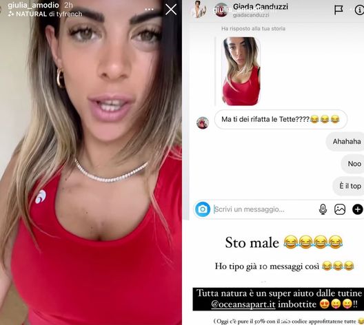 Giulia non rinuncia a tenersi in forma e ad allenarsi. Dopo alcuni scatti condivisi sul suo profilo Instagram molti follower le hanno posto una domanda indiscreta, alla quale lady Sensi ha risposto ridendo. "Se mi sono rifatta le tette? Sto male! Ho tipo già 10 messaggi così. Tutta natura e un super aiuto dalle tutine imbottite!".